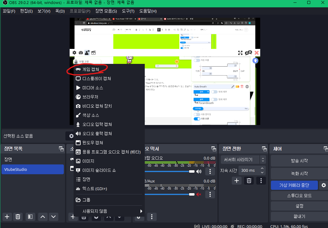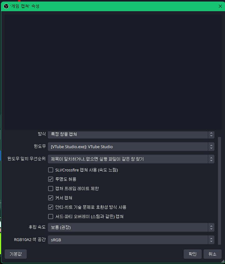 ※ OBS studio에서 아래로 내려서 자르는 편법 사용이 가능