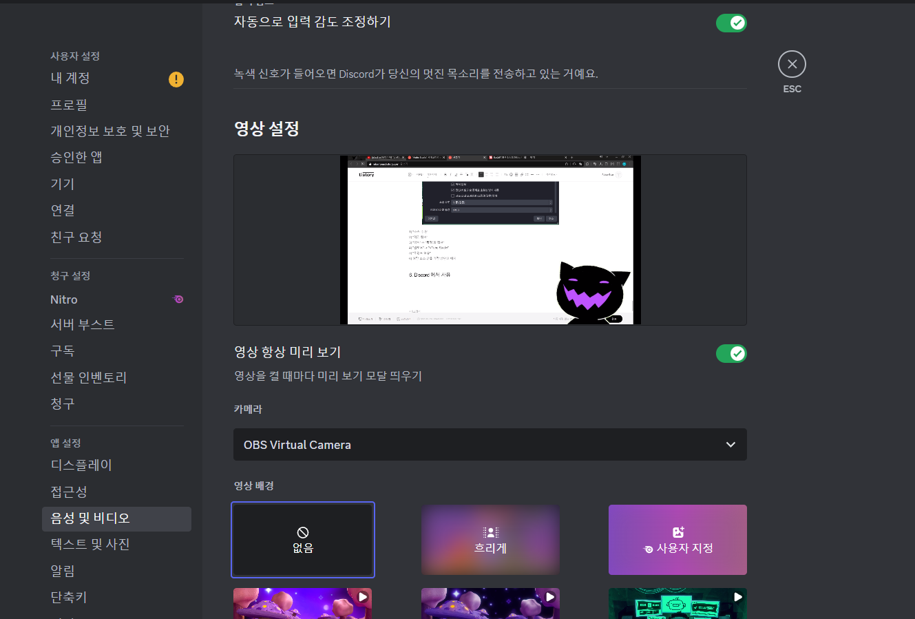 ※ "OBS" 에서 "가상 카메라" 를 사용해야 함.