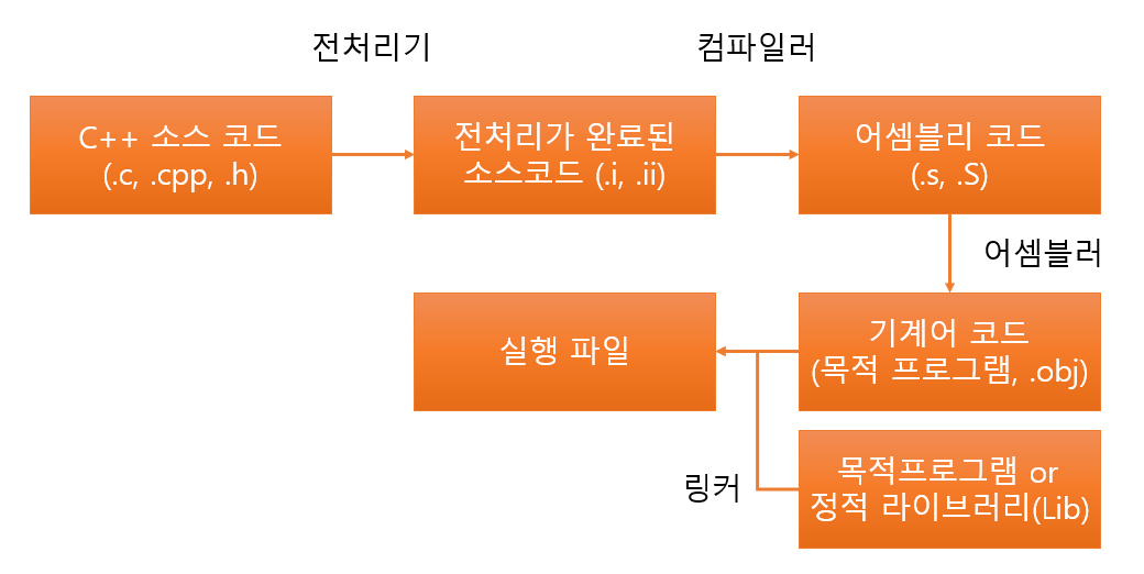 &상세 블로그 링크 : 씹어먹는 C++ - <20 - 1. 코드 부터 실행 파일 까지 - 전체적인 개요>