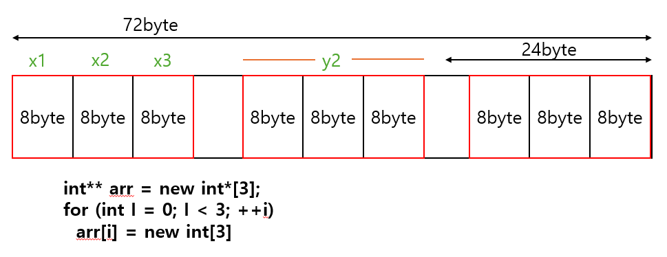 - 연속적 메모리 할당은 아님: